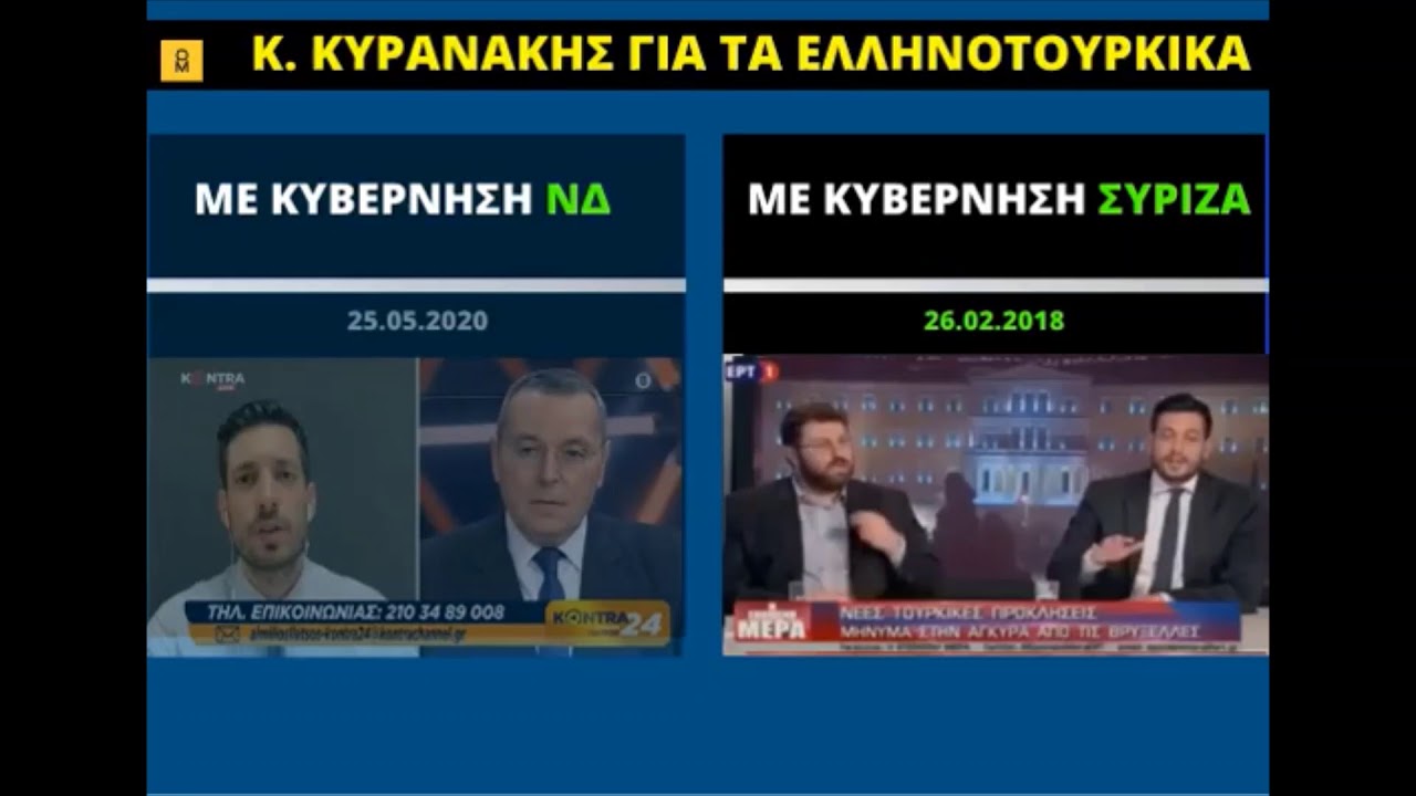 Τρανταχτό παράδειγμα αποτελεί ο Κωνσταντίνος Κυρανάκης. Που όλη τη προηγούμενη περίοδο, επί κυβέρνησης ΣΥΡΙΖΑ, βρέθηκε στα κάγκελα για την Συμφωνία των Πρεσπών αλλά και για τα ελληνοτουρκικά. Φτάνοντας στο σημείο στις 26 Φεβρουαρίου 2018, ως αναπληρωτής εκπρόσωπος τύπου της ΝΔ, να εγκαλεί την τότε ελληνική κυβέρνηση ότι προκαλούσε την Τουρκία στο Αιγαίο!